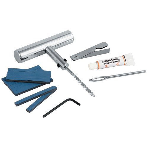 MIT 12-PC. TIRE REPAIR KIT features: * Chrome Plated Steel T-Handle * Drop Forged and Heat Treated Shafts * Do-It-Yourself and Save On Costly Professional Repairs * 1-pc. T-Handle * 1-pc. Rasp Tool * 1-pc. Open Eye Tool * 1-pc. Hex Key * 1-pc. Plug Cutter * 6-pc. Tire Plugs * 1-pc. Rubber CementAvailable at Amazon Check Price Now!