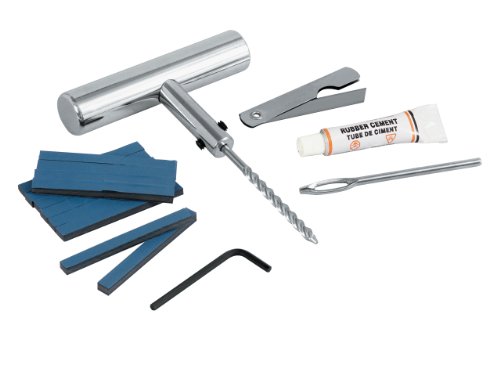 MIT 12-PC. TIRE REPAIR KIT features: Chrome Plated Steel T-Handle, Drop Forged and Heat Treated Shafts, Do-It-Yourself and Save On Costly Professional Repairs, 1-pc. T-Handle, 1-pc. Rasp Tool, 1-pc. Open Eye Tool, 1-pc. Hex Key, 1-pc. Plug Cutter, 6-pc. Tire Plugs, 1-pc. Rubber CementAvailable at Amazon Check Price Now!